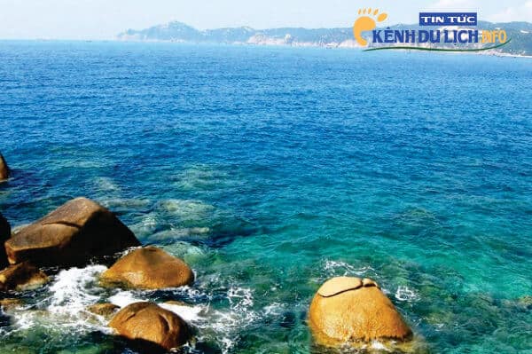 Đảo Yến còn có bãi tắm đôi ,một bên nóng, một bên lạnh do các dòng chảy tạo nên.